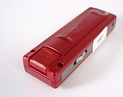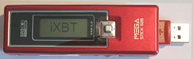 Плейдрайвы, как разновидность MP3-плееров, никогда не отличались особой легкостью или компактностью. Вся серия Mega Stick была достаточно громоздкой, как по причине наличия USB-коннектора, так и из-за использования батарейного питания. Для сокращения габаритов в новой модели было решено использовать достаточно удачное конструкторское решение, с которым ранее мы встречались в Hanbit XDRUM 403/405, заключающееся в том, что самая характерная часть плейдрайва, отвечающая за соединение с USB-разъемом, пряталась внутрь корпуса и при необходимости извлекалась наружу методом «выворачивания». Правда, надо заметить, что реализована эта идея здесь немного хуже, чем в XDRUM, ибо для извлечения коннектора нам необходимо каждый раз сдвигать крышку батарейного отсека.
