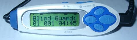 Двухстрочный дисплей с 12 знаками в строке в режиме показа ID3-тэгов работает по принципу бегущей строки. На самом верху дисплея расположились крошечные значки, отображающие режим работы плеера, тип файлов и уровень заряда батарей. К моему большому сожалению, дисплей не имеет подсветки, так что использовать его в темное время суток достаточно проблематично. Иногда случалось, что при подключении к работающему плееру пульт ДУ, что называется, "зависал". Это выражалось в том, что у экрана зажигались все элементы. Лечится сие достаточно просто отключением-подключением пульта к плееру.