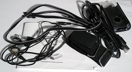 Стиль NF-510 поражает с первого взгляда на коробку. Сначала даже кажется, что перед тобой не MP3-плеер, а какое-то экзотическое украшение. Размер устройства невелик — 68 × 35 × 16 мм (примерно со спичечный коробок), а масса — 42.5 г., что для такой функциональности и алюминиевого корпуса совсем скромно (особенно если учесть, что и аккумулятор встроенный). Объем памяти — 256 или 512 Мбайт (на сегодня это самые ходовые объемы). Кроме самого плеера, в коробке можно обнаружить следующее: