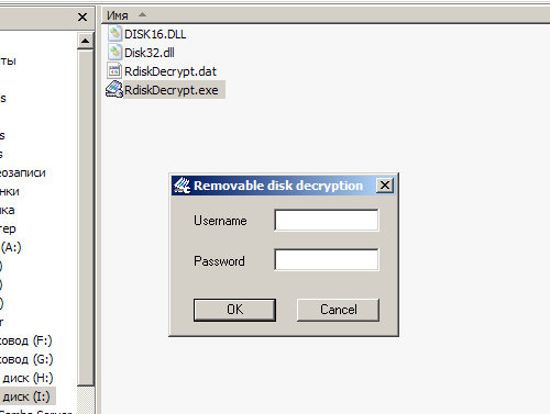 В дальнейшем при подключении плеера к компьютеру мы уже увидим не один диск, а целых 2, причем, на втором диске изначально будет содержаться только файл RdiskDecrypt.exe, при запуске которого нам предложат ввести пароль. И только после правильного ввода мы и получим доступ к зашифрованному содержимому. Неприятная особенность состоит в том, что окошко RdiskDecrypt.exe будет теперь все время висеть на экране, мозоля глаза.