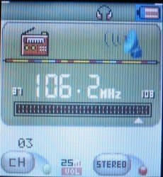 Прием радиотрансляций очень неуверенный, часть станций я поймать так и не смог. Некоторые принимались с сильными помехами. Поиск тоже далеко не самый лучший – пропускает нужные каналы, зато частенько останавливается на помехах, хотя после того ужаса, что мы наблюдали в MP320 — все не так уж плохо. Имеется 20 каналов для сохранения радиостанций, сохранять которые можно только вручную, автоматического сохранения нет, но на самом деле это и к лучшему, при таком поиске большая часть каналов оказалась бы забита шумами. Есть возможность записи трансляций, однако даже «качественный» формат ADPCM показывает такое отвратительное звучание, по сравнению с которым даже старые магнитофонные записи кажутся шедеврами качества. В случае MP720C также очень неудобен интерфейс записи, для осуществления которой необходимо вызвать меню и выбрать один из пунктов «Fine Rec» или «Long Rec».