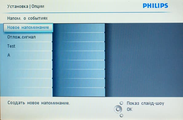 Вы задаете имя события, фотографию, его сопровождающую, время, дату (можно выбрать либо конкретный день, либо «каждый день»), и в заданное время сначала появится фотография, затем имя события. Также, если в настройках стоит опция «Включить сигнал», звучит писк из динамика. Здесь есть одно но: когда эта опция включена, на каждое нажатие на кнопку тоже возникает писк. Логичнее было бы сделать свою настройку звука для напоминаний, но этого, к сожалению, нет.