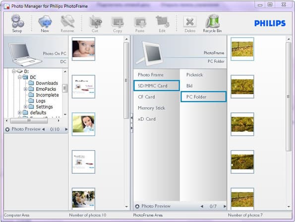 Для того, чтобы обмениваться фотографиями между компьютером и рамкой, можно воспользоваться фирменой программой Philips Photo Manager, имеющейся на диске.