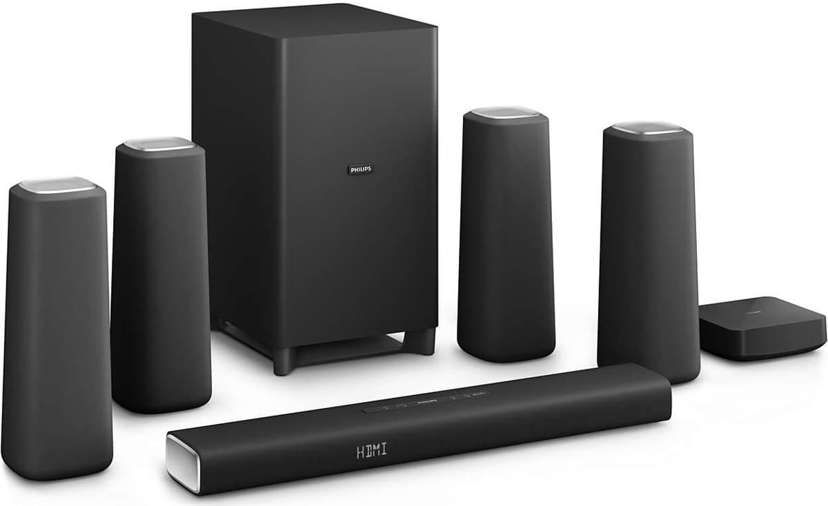 Конечно, саундбар с беспроводным сабвуфером вообще не требует кабелей — понятно, кроме подключаемых к сети переменного тока и к источникам сигнала, но система с пятью раздельными колонками (не считая сабвуфера) способна лучше передавать пространственную звуковую картину, причем даже без ссылок на некие уникальные технологии обработки звука.