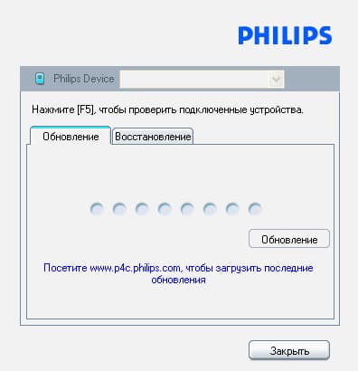 Помимо программы Media Converter для Philips, имеется еще одна — Philips Device Manager. Она висит в трее и ждет, когда вы подключите плеер к компьютеру. Она нужна только затем, чтобы устанавливать новые прошивки и восстанавливать плеер, в случае сбоев.