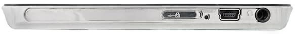 На нижней грани расположен ползунок для блокировки клавиш, а также стандартное (что очень хорошо для будущих владельцев) гнездо mini-USB. Рядом с ним — также стандартное 3,5 гнездо для наушников. Оно расположено не в самом лучшем месте, ведь если держать плеер в кармане, кабель будет перегибаться, и наушники могут быстро сломаться.