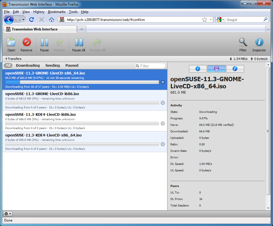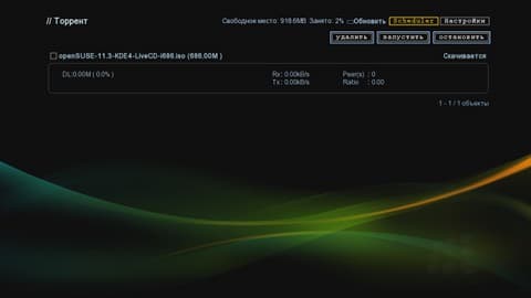 Управление загрузками осуществляется или через само устройство или же через браузер с компьютера. Настройки клиента стандартны. По-умолчанию загрузка идет на системный накопитель, но можно использовать и любой другой, не забывая о мерах предосторожности при смене винчестера.