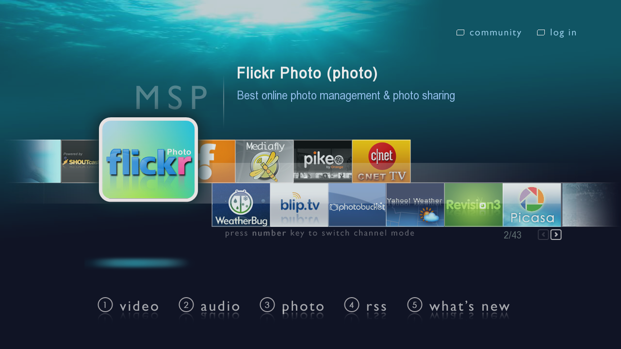 Среди готовых ресурсов можно найти YouTube, WeatherBug, Photobucket, Twitter, Picasa. Всего поддерживается более пятидесяти он-лайновых источников видео, аудио, фото контента и RSS, перечислять которые мы здесь не будем.