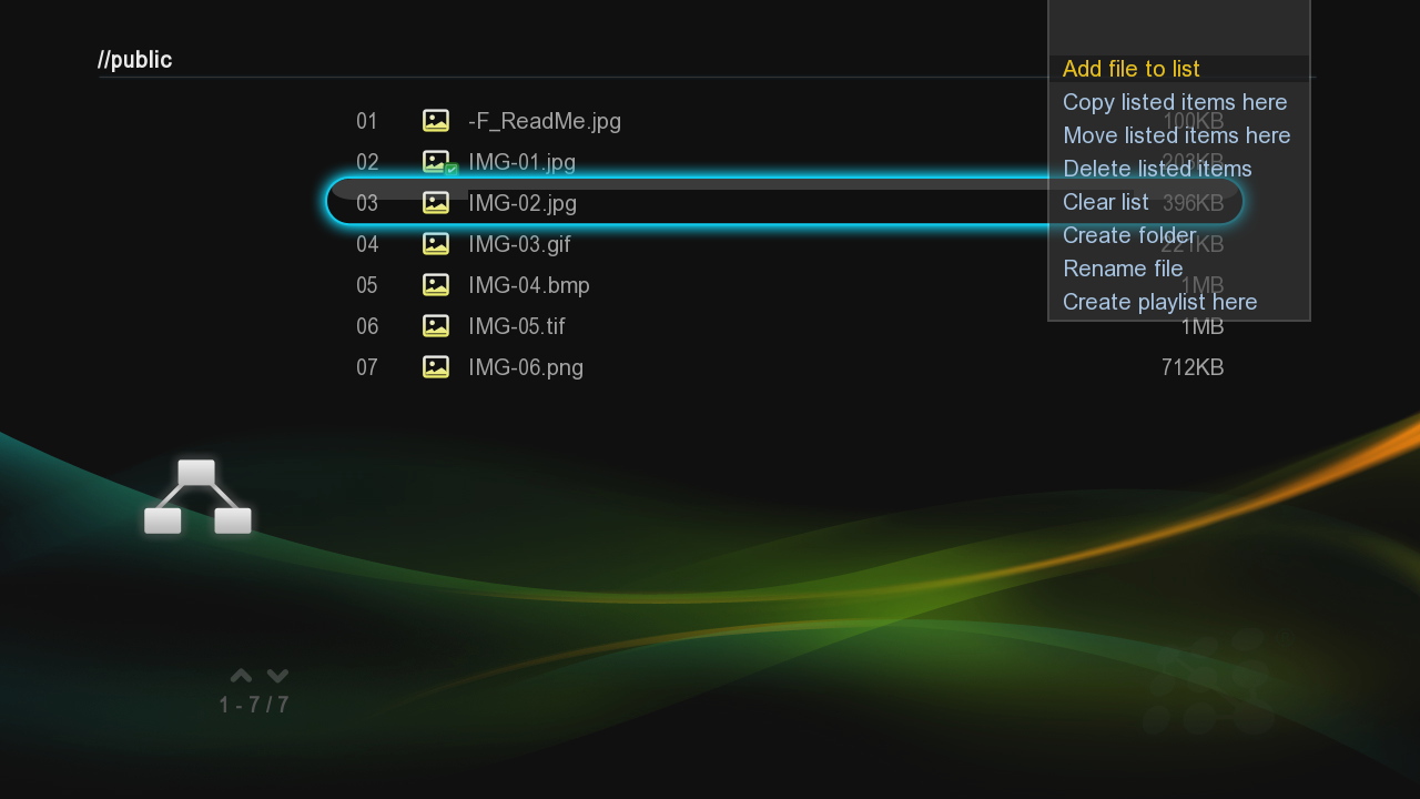 Накопители можно подключать через хаб, они могут иметь несколько разделов, поддерживаются файловые системы FAT, EXT2/3, NTFS и даже HFS+ (только чтение) и русские имена файлов. Сетевые протоколы включают в себя упомянутые выше SMB и NFS, а также UPnP/DLNA. Ресурсы можно заранее прописать в настройках или же использовать браузер сети.
