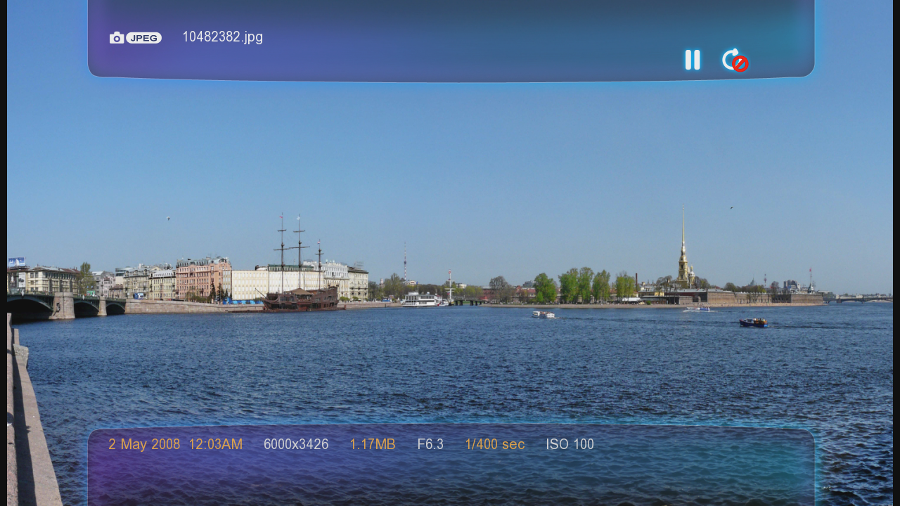 На последнем поколении устройств уже нет никаких проблем с большинством форматов медиафайлов. Рассматриваемая модель поддерживает отображение фотографий JPEG, GIF, BMP, TIF, PNG. Есть возможность просмотреть информацию из EXIF, при этом флаг поворота учитывается при отображении фотографии. Во время просмотра есть опции по развороту и увеличению изображения. Если считать пиксели, то 18 МП фотографии можно посмотреть. Удобно, что во время слайдшоу новая фотография показывается сразу, без каких-либо пауз на загрузку данных. Так что за фотоальбом ставим четверку.