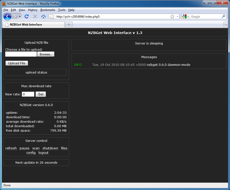 NZB используется для загрузки файлов из сети Usenet, у нас эта технология менее распространена, чем торренты. В качестве клиента в плеер установлена программа NZBGet. Управление — только через браузер с компьютера.