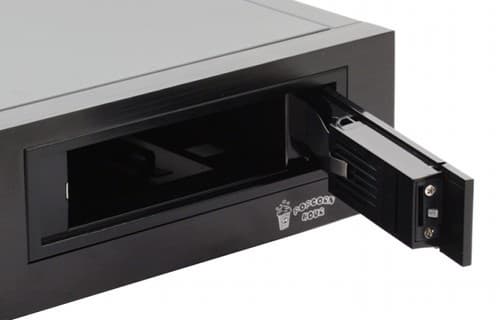 Вторая опция — установка 2,5″ SATA-диска. Его место находится под реком для «большого» накопителя, выступающего в качестве третьей возможности для выбора конфигурации. Отсек в данном случае совершенно стандартный для 5,25″ устройств с возможностью доступа к передней панели. В оригинальном варианте в нем установлена комплектная корзина для быстрого подключения 3,5″ винчестеров. Для замены диска в ней не требуется ничего разбирать или монтировать — достаточно только открыть отсек на лицевой панели плеера. Если же это не требуется, то корзину можно заменить на обычный 5,25″ оптический привод. Единственное замечание к данной конструкции — не очень удобный для разборки-сборки механизм.