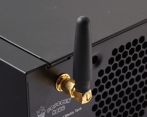 Есть также четыре внешних входа USB для подключения внешних USB-накопителей. Два из них находятся сзади, а два — на передней панели. Работа в сети может осуществляться через проводной интерфейс, который поддерживает скорости FastEthernet (100 Мбит/с) и гигабит. Однако последний, как и в ранее рассмотренных устройствах, в реальности малоприменим и не дает реального эффекта. Если же не хочется тянуть провода, то можно дополнительно приобрести одну из двух специализированных моделей с поддержкой 802.11n — компактный USB-адаптер WN-150 или рассчитанный на слот MII WN-200, имеющий три крупные антенны, для крепления которых в корпусе плеера предусмотрены отверстия. Именно последний вариант обеспечивает максимальную производительность беспроводной сети.