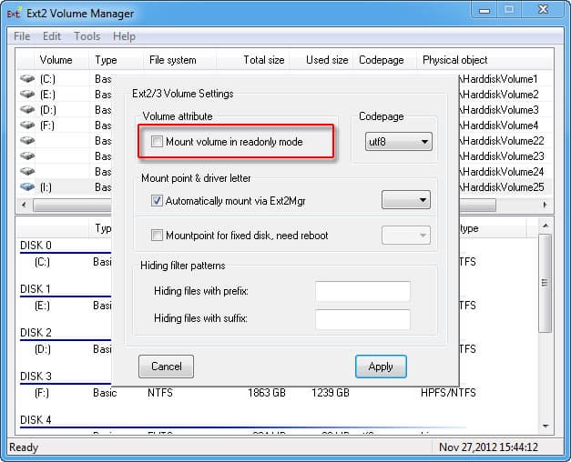 Существуют и другие способы организации доступа к дискам с такой файловой системой — их нетрудно найти в интернете.