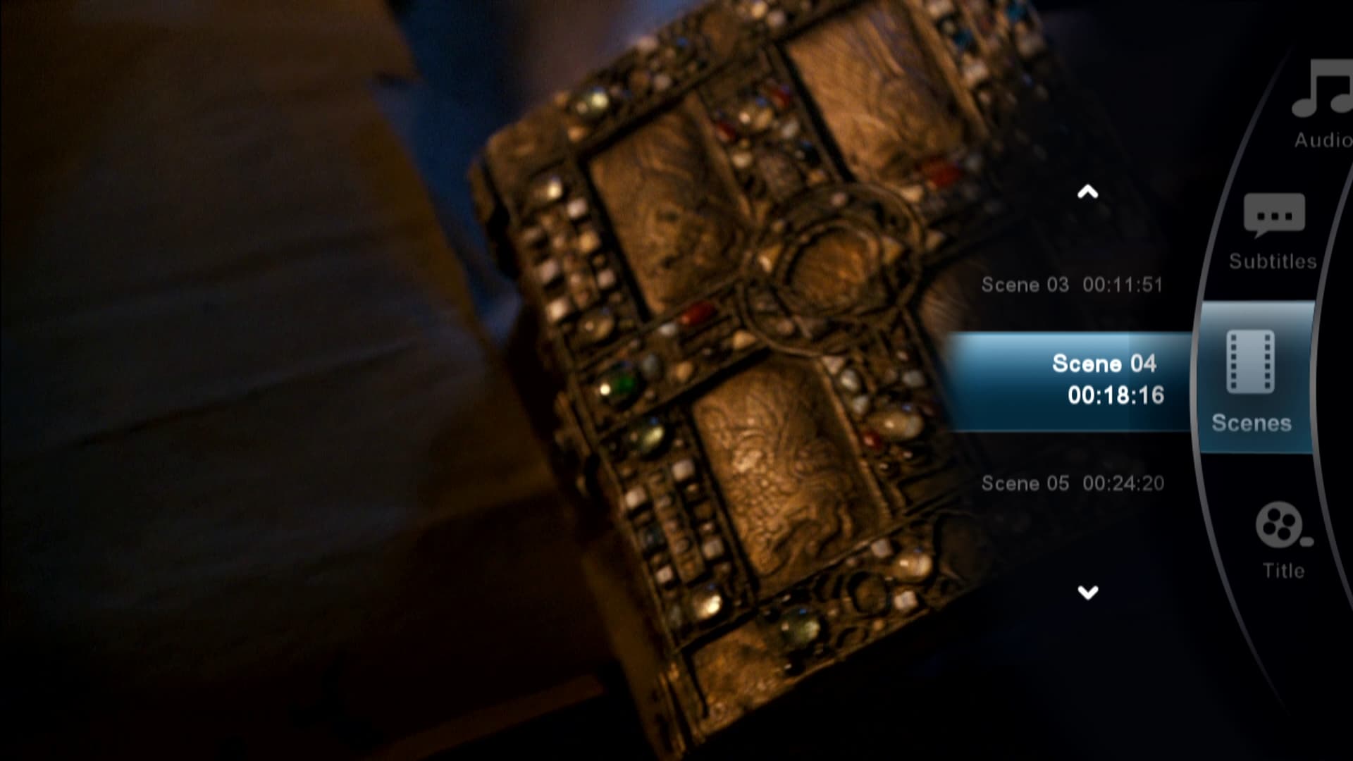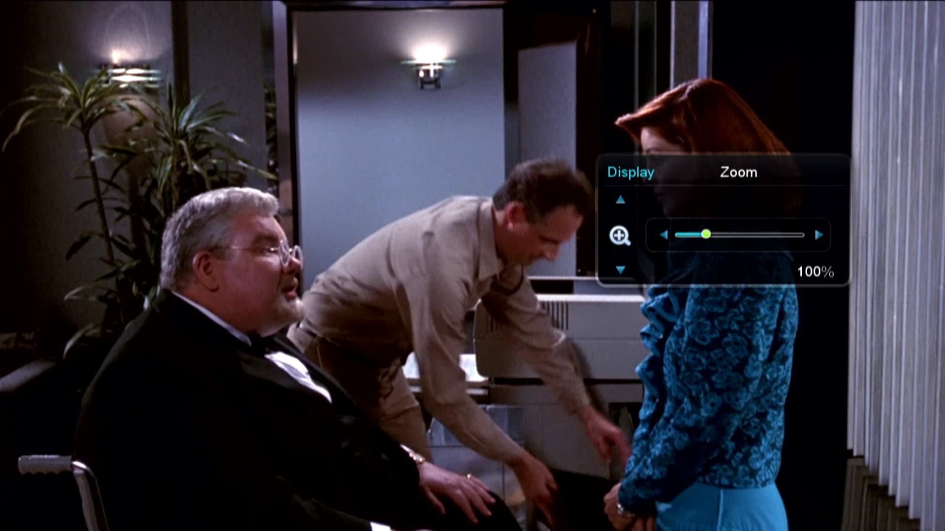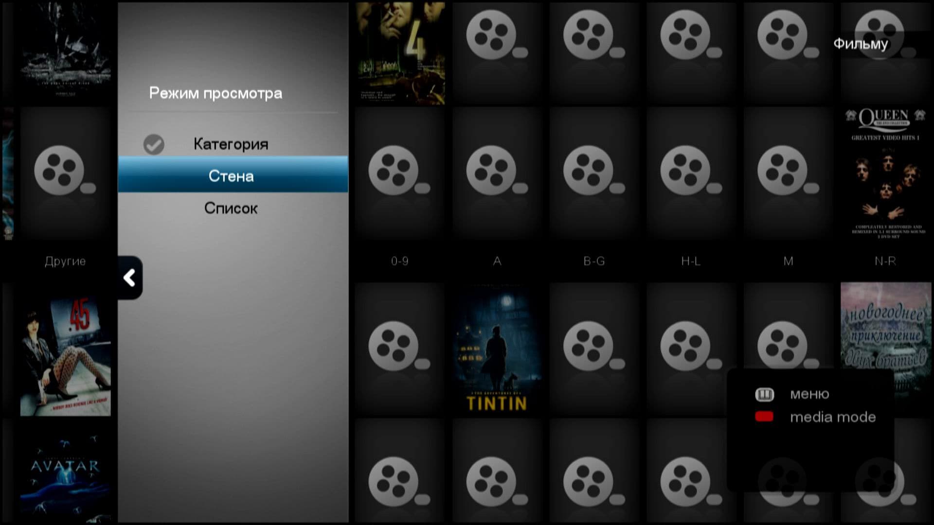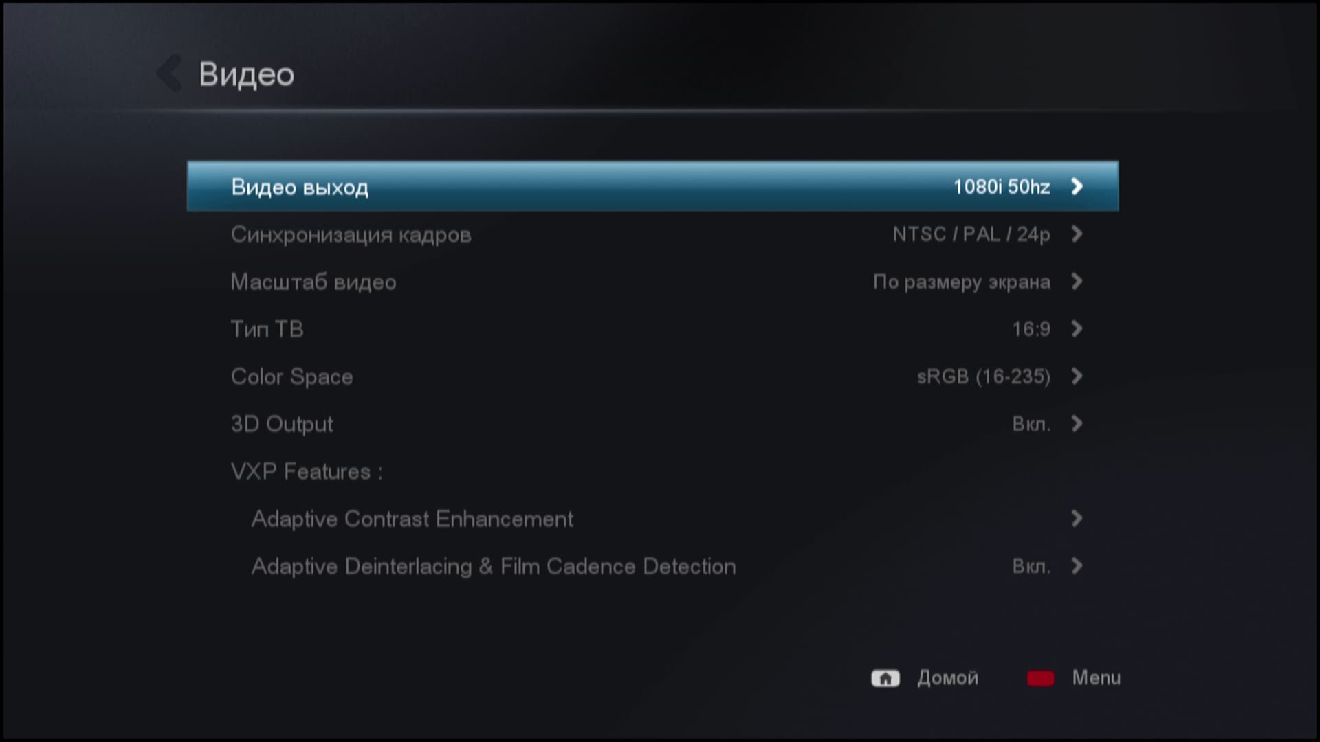 Также при воспроизведении пользователь может переключать звуковую дорожку или субтитры, изменять размер кадра вплоть до точного сдвига и позиционирования по экрану, совершать быстрый переход по сценам, если chapters присутствуют в файле. Данные операции можно сделать как с помощью кнопок на пульте ДУ, так и посредством удобного наглядного меню, выплывающего из-за правой границы экрана.