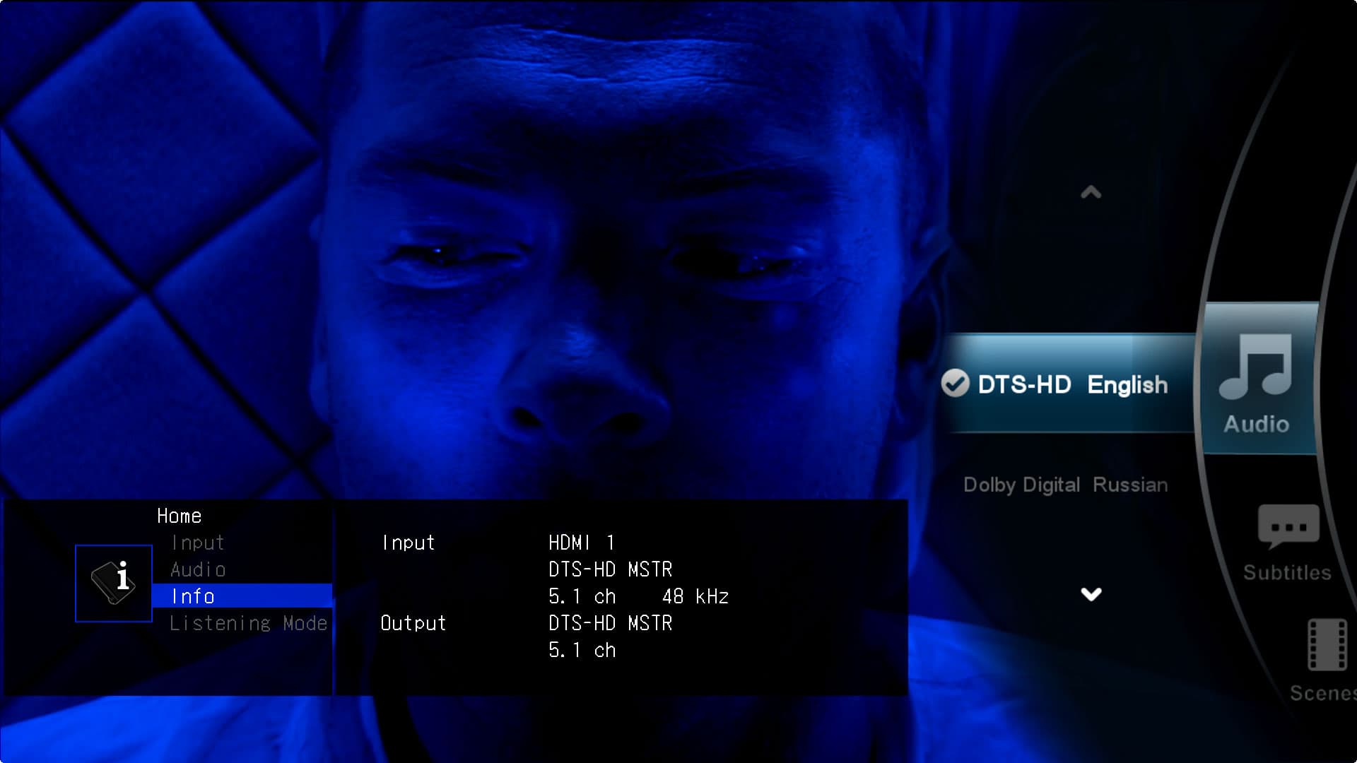 С передачей звука при тестировании плеера сразу же не заладилось. Аппарат ни в какую не желал воспроизводить DTS HD по HDMI, ни в видеофайлах, ни отдельные HD-аудиофайлы. Сжатые форматы — AC3, AAC, DTS и прочие — это пожалуйста, но стоило выбрать дорожку или файл со звуком в формате DTS HD, DTS HD Master Audio или любые FLAC либо Monkey's Audio, как ресивер замолкал. При этом он выводил на экран противоречивую информацию о характере источника: то покажет, что на вход подаётся двухканальный PCM (хотя в это время воспроизводится дорожка самая что ни на есть DTS HD Master Audio 7.1), то вдруг источник становится Unknown. Но чаще всего ресивер спонтанно изменял одно значение на другое с интервалом в несколько секунд. В общем, выглядело всё так, словно в проводном интерфейсе имеется плохой контакт.