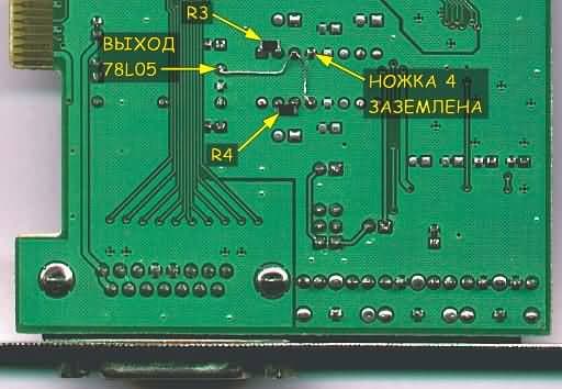 Рисунок 3. Вид переделанной звуковой платы со стороны пайки.
