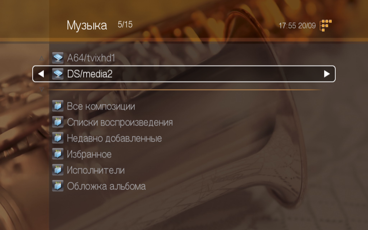 После выбора на меню «Мультимедиа», появляется окно с возможными источниками для файлов. Среди них локальный диск, USB-устройства и настроенные сетевые ресурсы. Здесь достаточно лишь выбрать источник и интересующий медиаконтент, после чего начнется воспроизведение. Все легко и понятно.