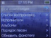 Управление девайсом производится целиком и полностью при помощи сенсорной панели, знакомой нам по Meizu M6, но в несколько уменьшенном варианте и с отсутствием кнопок навигации по бокам. Сразу необходимо отметить, что чувствительность сенсора не настраивается, а изначальная великовата. В том же iPod сенсор удобнее, да и если «раскрутить» преподобный Click Wheel, представив его в виде полоски, она будет длиннее чем у Ritmix’а. Здесь еще также позволю себе добавить ложечку дегтя: возможно, конечно, что это недоработка именно нашего сэмпла, но иногда сенсор начинает реагировать крайне странно, практически не отзываясь на прикосновения. От пользователей подобных жалоб лично я не слышал, стало быть это у нас проблемный сэмпл.