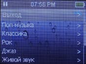 Данная кнопка работает также и в некоторых случаях при перемещении по меню открывает некоторые категории. Иногда ею можно воспользоваться вместо прикосновения к сенсору для входа в различные меню, но реализована эта возможность весьма скверно: иногда работает, иногда нет. Имеет место быть и обратный момент: некоторые меню, в частности настройки эквалайзера, открываются только этой самой кнопкой, прикосновения к сенсору не помогают. Этот нюанс, конечно, разработчики не додумали.