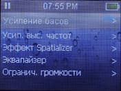 Есть где разогнаться при самостоятельной настройке звучания. Имеется обычный эквалайзер с 6-ю предустановленными и одним пользовательским режимами. Каждую предустановку можно изменить с помощью 10-ти полосного эквалайзера. Отдельно вынесли возможность усиления басов и верхних частот, работающую поверх всех режимов эквалайзера. Также плеер снабжен, видимо, фирменной «примочкой» «Spatializer». Она также позволяет поиграть с настройками, но, предположу, что пользоваться ей мало кто будет звучание она изменяет до неузнаваемости. И последнее относительно звука есть возможно ограничить максимальную громкость, дабы не оглохнуть. Функция эта в данном плеере не так бесполезна громкость-то регулируется сенсором, и при неосторожном движении руки она может моментально увеличиться до максимума, что вашим ушам вряд ли понравится.