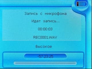 Диктофон в плеере простенький. Имеется два уровня качества: при первом запись ведется в WAV с битрейтом 64 Кбит/с и частотой 16 кГц, при втором 32 кбит/с, 8 кГц. Этого хватит для записи речи с близкого расстояния, на большее рассчитывать не стоит.