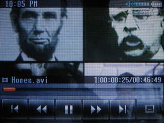Воспроизведение происходит либо в чистом виде, либо в сопровождении кнопок и полосы прогресса, ползунок которой, благодаря сенсорному дисплею, можно двигать, чтобы быстрее переместиться к требуемому кадру. Перемотку можно осуществлять также и сенсорными кнопками. Вперед мотается быстро, в сопровождении картинки, назад, почему-то, очень медленно. Просмотр можно назвать удобным, но здесь критерий удобства зависит целиком и полностью от вас — ведь размер дисплея, особенно на фоне существующих видеоплееров, не очень велик.
