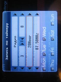 Плеер также может вести запись по таймеру, со всех возможных источников: линейного входа, микрофона или радио. В настройках необходимо указать время начала записи, в промежутке от 5 минут до 20 часов указать ее длительность, в случае с радио — частоту, с которой необходимо писать, а также дни недели, если требуется делать записи регулярно. Это довольно редкая функция, раньше она встречалась чаще, и если необходимость в ней есть, то данный плеер вполне справится со своей задачей. Также помимо прочего можно просто указать, через какой срок плееру необходимо выключиться — от 10 до 120 минут.