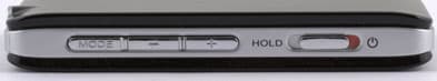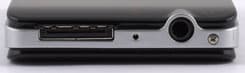 Порты коммуникации расположились на левом торце — это выход на наушники и USB-гнездо. Гнездо нестандартное — плоское, но видим мы его не впервые: такие встречались и у многих последних плееров Samsung, и у Iriver, и у других. Так что, вполне можно предполагать, что такой шнур перейдет в ранг стандартных в ближайшее время, если уже не перешел.
