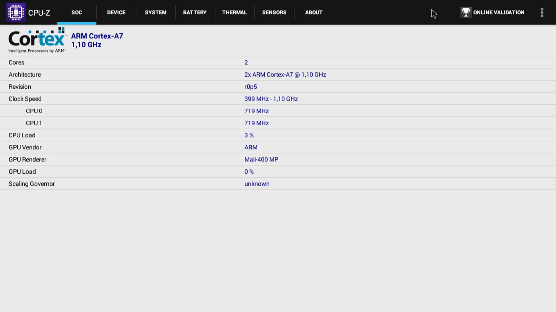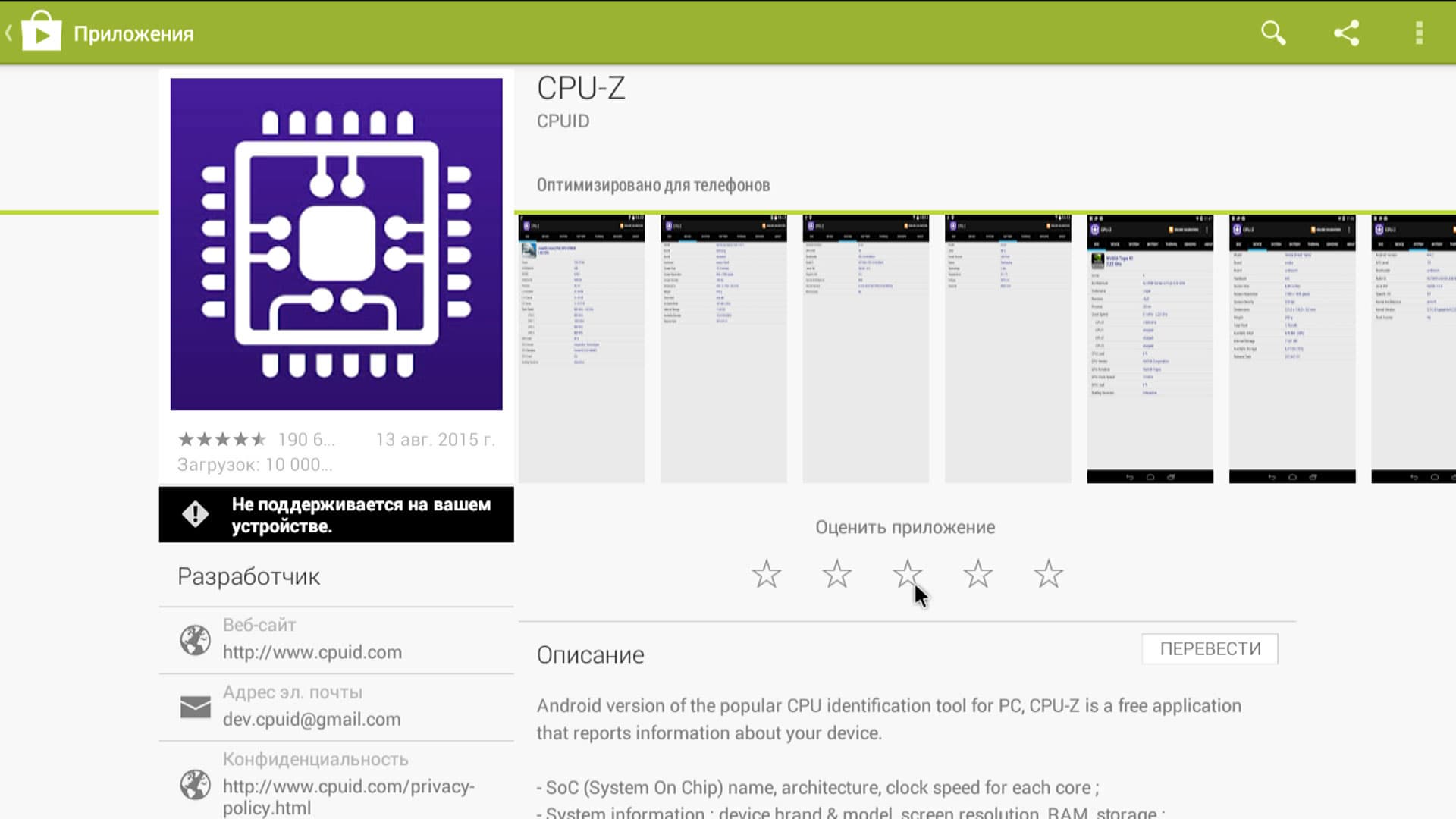 Стандартная оболочка Android по обыкновению дает самую скупую информацию, насколько это возможно. В отличие от такой немногословности, информационный модуль оболочки Rombica дает больше сведений. Но исключительно полную информацию можно получить лишь с помощью специализированных приложений, например, CPU-Z. Правда, тут мы впервые столкнулись с невозможностью прямой установки с Play Market некоторых нужных в хозяйстве программ. Например, таких, как упомянутый информационный пакет CPU-Z или тестовая программа Epic Citadel.