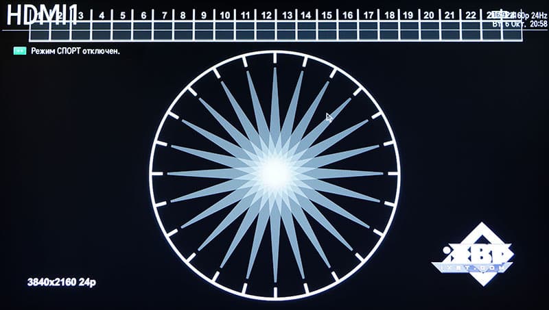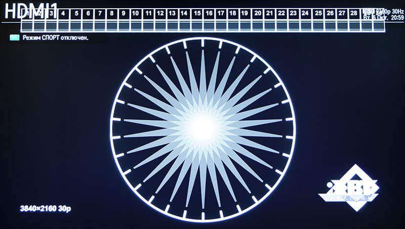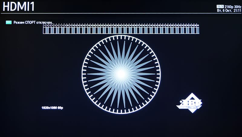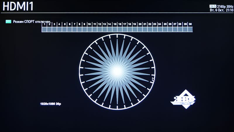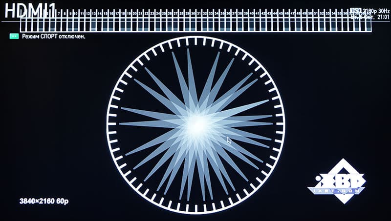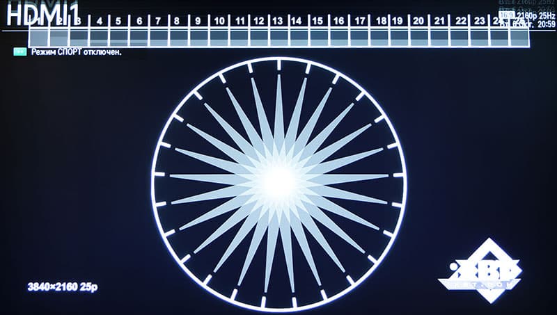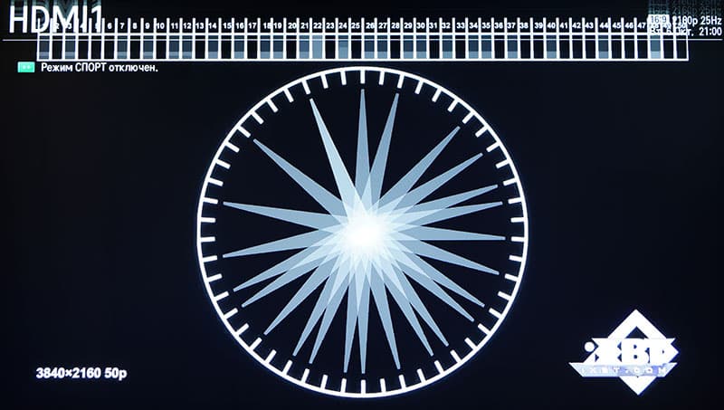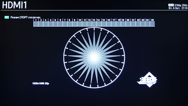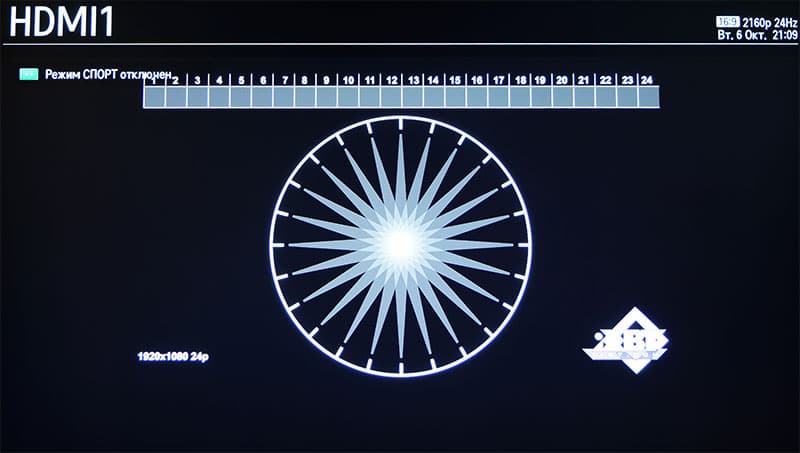 Можно видеть, что геометрической трансформации при воспроизведении тестового ролика приставка не допускает — видео передается пиксель-в-пиксель, приставка транслирует честные 1920×1080 и 3840×2160 точек.