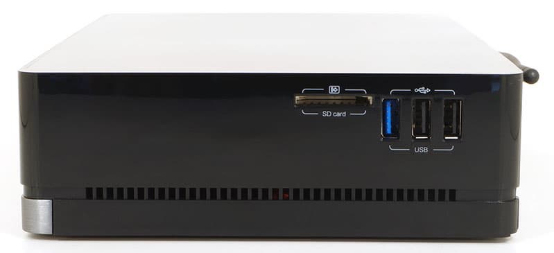 На лицевой панели расположено окошко, за которым установлен инфракрасный датчик, улавливающий сигналы с пульта ДУ, чуть в стороне находится кнопка включения аппарата с двухцветным светодиодным индикатором. Нажатие кнопки приводит к включению или выключению аппарата с полными циклами загрузки или завершения работы системы. Правая сторона корпуса содержит слот для карты памяти формата MMC, SD и SDHC емкостью до 32 ГБ, два порта USB 2.0 для подключения внешних накопителей или периферии, в том числе управляющей, а также один порт USB 3.0 для подключения скоростных USB-накопителей.
