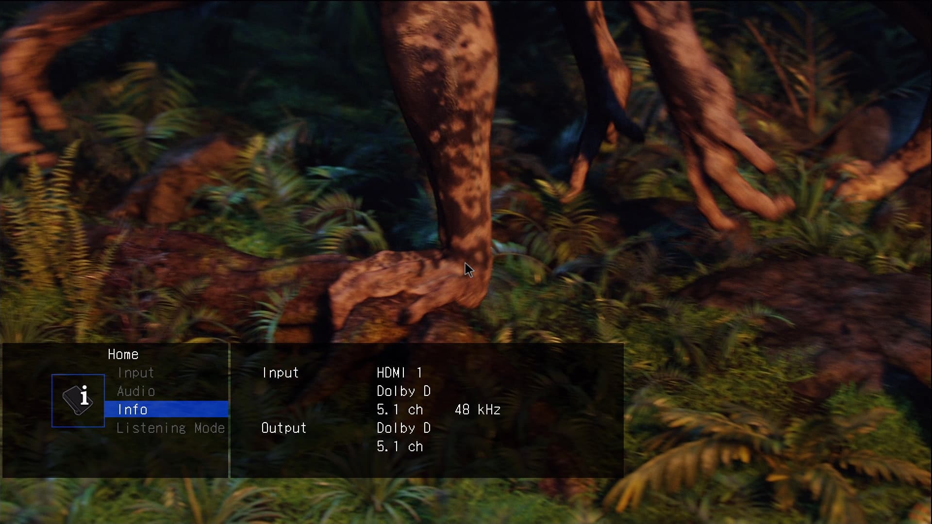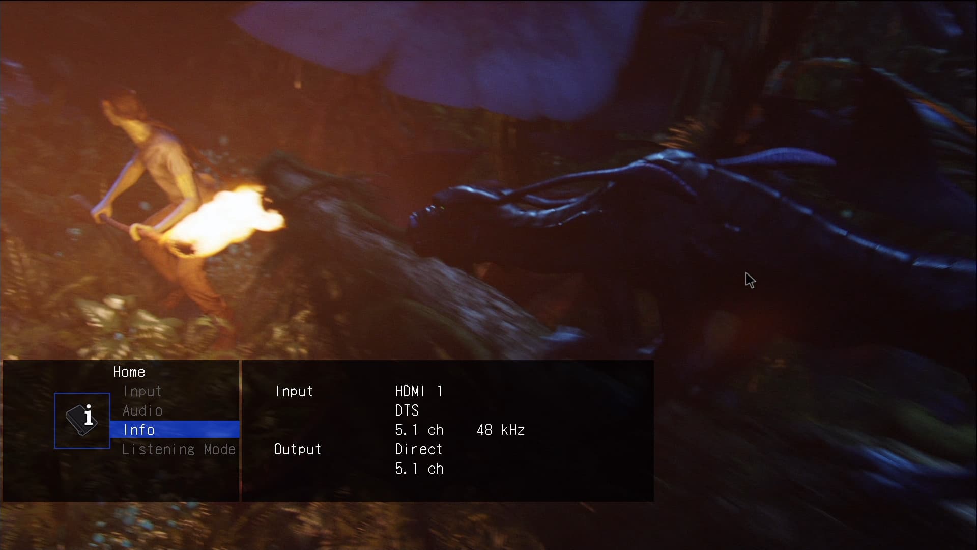 Для проверки работы режима passthrough подключим наш плеер к HDMI-входу аудиоресивера, а HDMI-видеосигнал с этого ресивера пустим в устройство захвата — нам необходимы стоп-кадры, доказывающие наличие многоканального и HD-звука. Вот они, эти кадры: