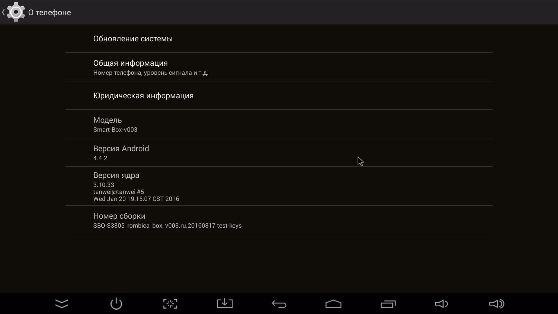 | Прочие настройки, включая звук | Информация о системе и обновление прошивки |