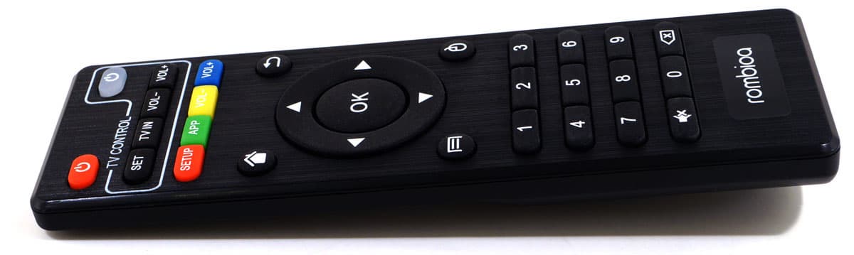 Прилагаемый миниатюрный пульт ДУ содержит резиновые кнопки, одна из которых «подмигивает» красным, сигнализируя о нажатии на любую из кнопок. Эта же кнопка активирует функцию программирования кнопок. Обучаемые кнопки, расположенные в верхнем блоке, можно запрограммировать для воспроизведения инфракрасных команд любого бытового прибора, управляющегося ИК-пультом. Это может быть и телевизор, и аудиоресивер. Да вообще любой прибор с ИК-датчиком, от увлажнителя воздуха до кондиционера. Еще одна кнопка переключает пульт в режим мышки, при этом на экране появляется курсор, который можно перемещать при помощи джойстикообразного блока кнопок-стрелок на пульте.
