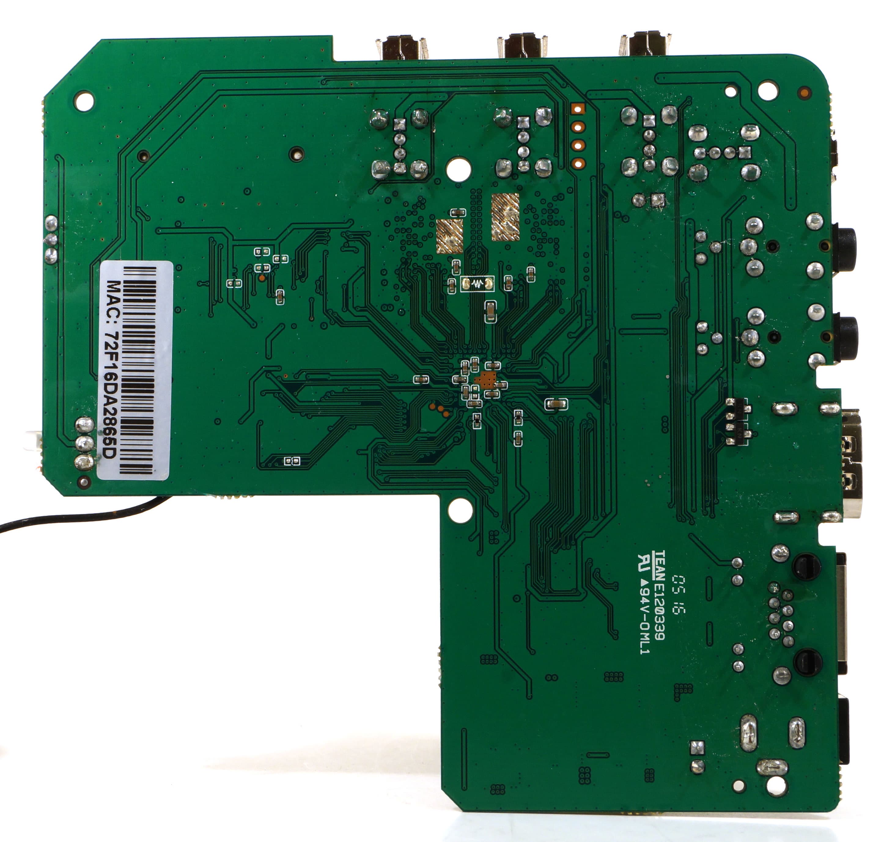 Основные компоненты прикрыты радиатором, из видимых комплектующих можно разглядеть микросхемы памяти и чип Ethernet-интерфейса 10/100Base-T.