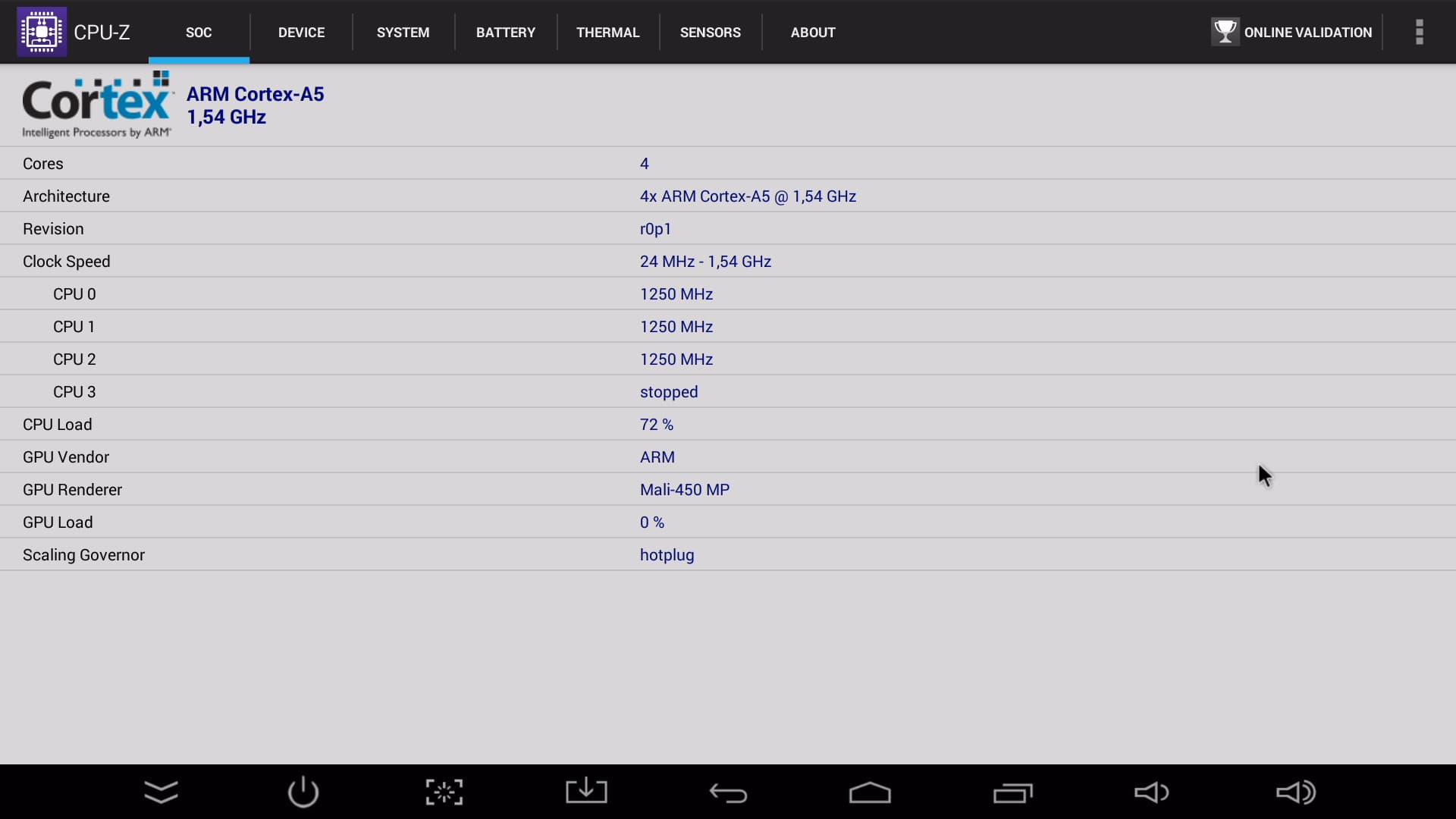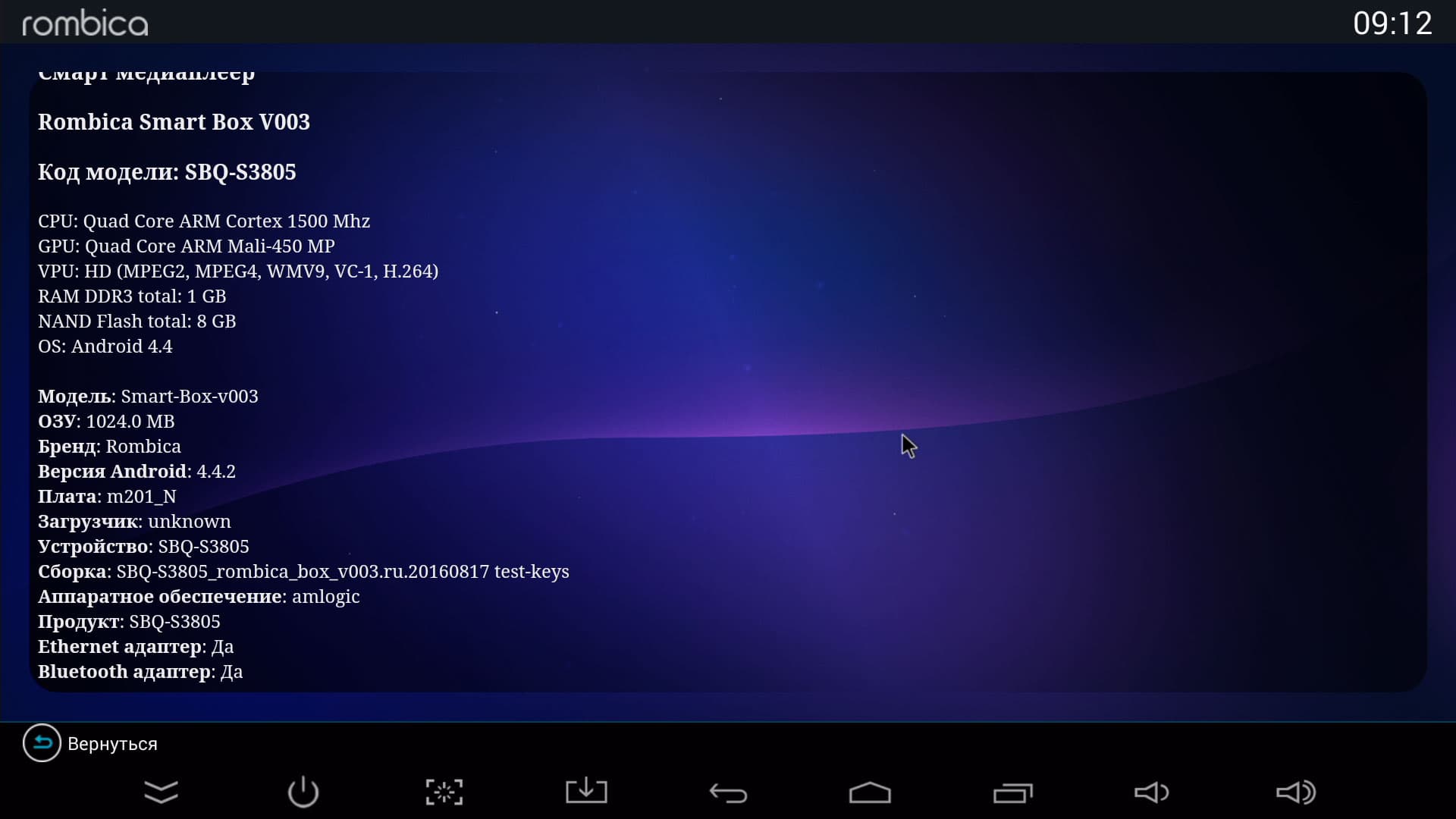 | Центральный процессор | 4 ядра ARM Cortex-A5 1,5 ГГц (SoC AMLogic) |
