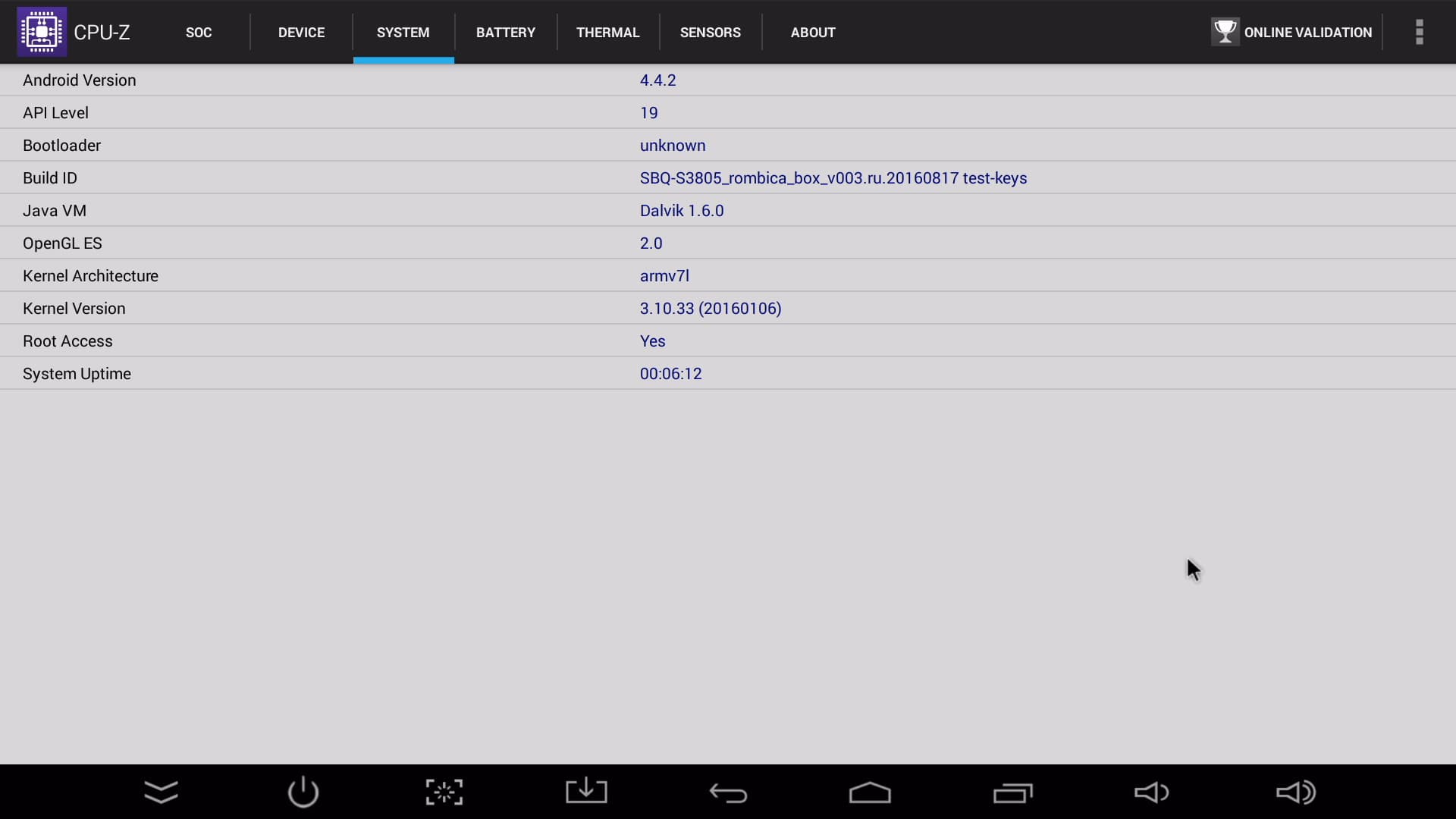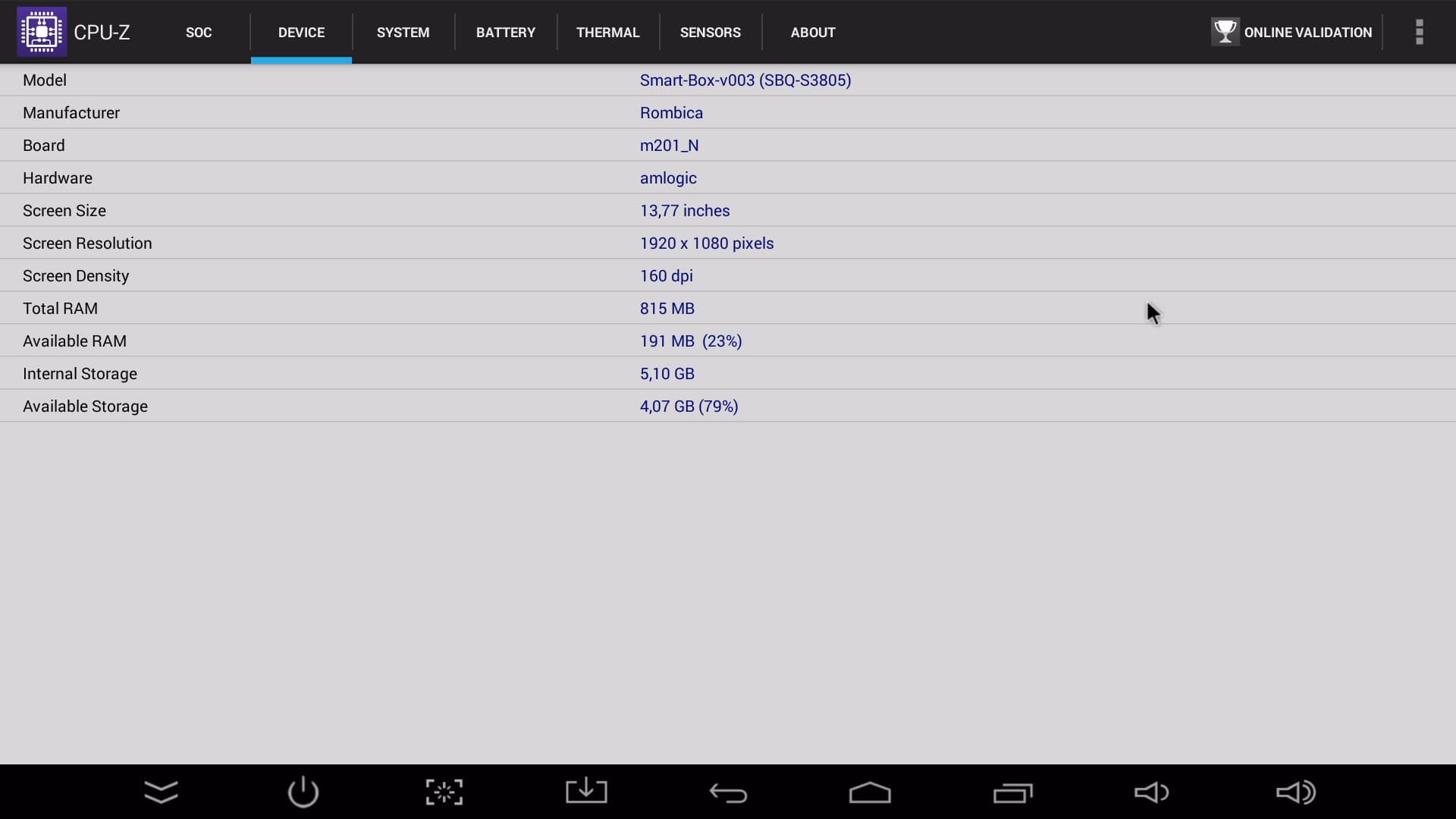 Здесь любопытен один пункт — Разрешение экрана. Он, как ни странно, показывает максимально возможное для нашей приставки значение — 1920×1080. В то время как для в значительной части стационарных Android-устройств этот пункт обычно показывает значения, далекие от истины. Дело в том, что из-за отсутствия физического дисплея в таких устройствах используется некий виртуальный экран, разрешение которого указывается разработчиками (точнее, оптимизаторами прошивки). И указывается, как часто выясняется, «от фонаря». Обычно таким разрешением является привычный HD с его размером кадра 1280×720. Но в нашем плеере, как видим, все честно — разрешение виртуального дисплея, к которому при старте обращаются приложения, соответствует максимальному разрешению видеовыхода.