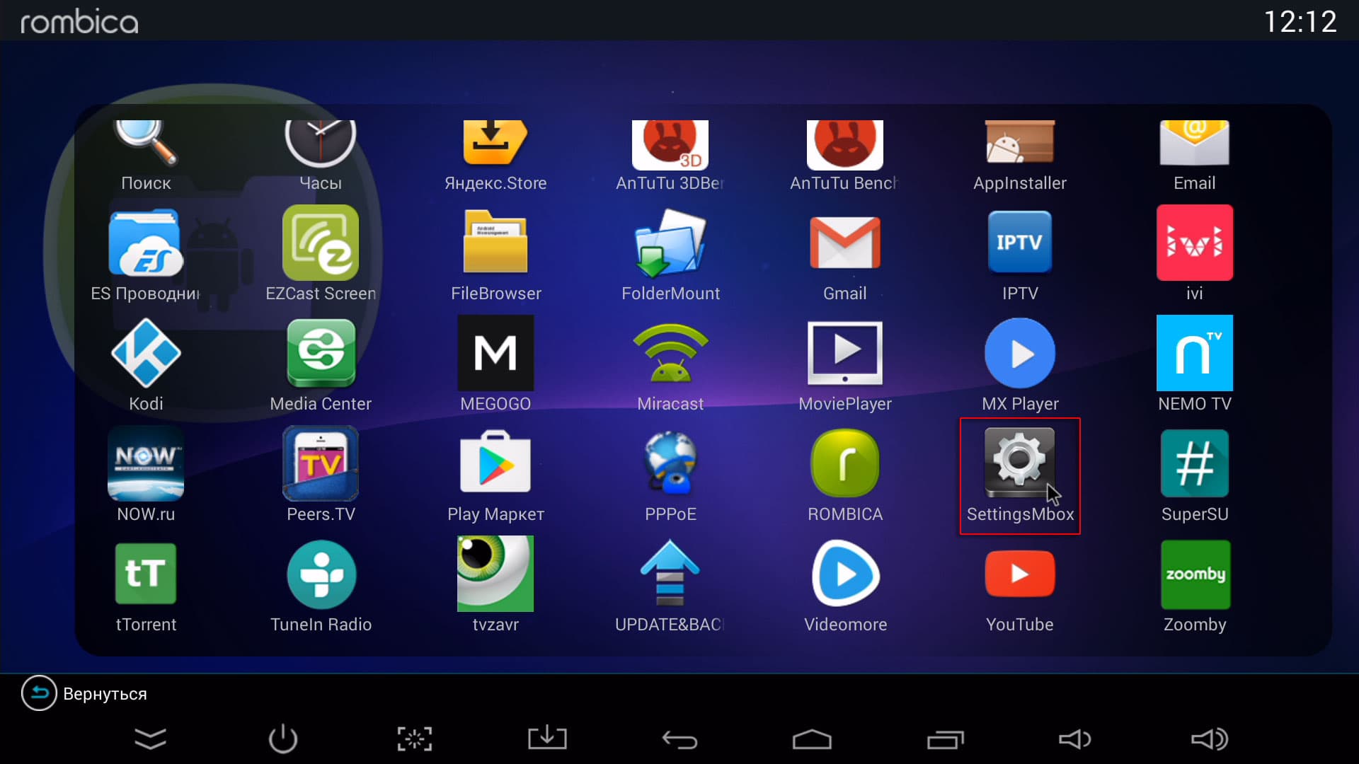 Дело в том, что эти настройки, которые по сути выходят за рамки стандартных настроек мобильных Android-устройств, спрятаны в фирменном приложении, позволяющем задействовать нестандартные для смартфонов функции. Приложение это называется незамысловато: SettingsMbox.