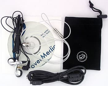 Комплект поставки стал интереснее. Впрочем, руководство пользователя и CD в нем есть по-прежнему (диск так вообще такой же), зато отдельные наушники и шнурок сменились на привычную по другим компактным плеерам комбинированную «упряжь», а к обычному USB-кабелю добавился еще и компактный переходник (как у MPIO FY200), что облегчает использование плеера в качестве средства переноса данных.