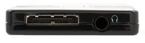 Также следует упомянуть о разъеме, «на борту» самого плеера. Вместо обычного USB mini-B использован другой разъем, чуть более продолговатый и удобный для плоского корпуса устройства. Впрочем, такой же разъем можно наблюдать у плееров производства Samsung, так что огромных трудностей в случае повреждения кабеля возникнуть не должно.