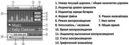 Кроме самой возможности передачи данных важно также и то, какие данные, полученные плеером, мы сможем воспроизвести. Официально заявлено всего два формата MP3 и WMA. Поддержки популярного у определенного круга пользователей формата OGG, к сожалению нет. Впрочем, поддержка двух основных форматов тоже оказалась неидеальной. При воспроизведении файлов *.mp3, закодированных в режиме «моно», наблюдалось очень серьезное ухудшение качества воспроизведения. А с WMA совсем плохо имеется поддержка только 9-ой версии кодека (все остальные просто игнорируются). Но и версией 9 имеются проблемы: тестовый файл с параметрами 22050 Гц, 32 кбит/с плеер просто проигнорировал, а файл VBR, сжатый с максимальными настройками качества (240-350 кбит/с), плеер увидел, но при попытке воспроизведения выдавал лишь шум. Также следует заметить, что отсутствует поддержка русских ID3-тэгов в общепринятой у нас в стране кодировке 1251, зато прекрасно поддерживается юникодные тэги, поэтому для корректного отображения названия песен вам придется воспользоваться программным перекодировщиком или включить в плеере опцию отображения только имен файлов.