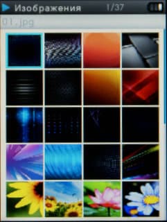Плеер умеет открывать картинки форматов JPG, BMP, PNG, GIF. Возможностей не так много: можно лишь установить текущее изображение как обложку для главного меню, а при просмотре картинку можно увеличивать и потом по увеличенному изображению перемещаться.