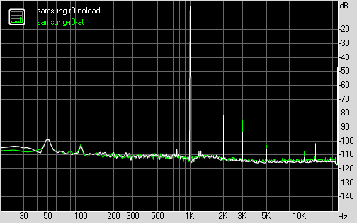 График искажений при нагрузке наушниками ATH CK9 (30 Ом) и без нагрузки: