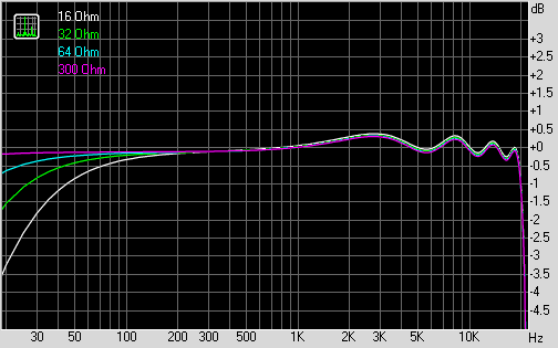 Также мы провели измерения, подключив реальные наушники. Были использованы следующие модели: арматурные ATH CK9 (30 Ом), арматурные Philips SHE-9850 (12 Ом), динамические накладные Sennheiser PX100 (32 Ом).
