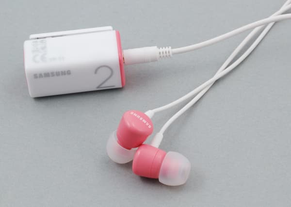У нас на тестировании побывал бело-розовый плеер, но существуют еще бело-салатовый. В комплекте идут наушники такого же цвета, как и плеер. Наушники типа «затычки». Претензии к ним имеются. Например, в комплекте нет сменных силиконовых насадок, а те, которые уже надеты на наушники, слишком малы и подойдут скорее для детей, чем для взрослого молодого человека или девушки. Чтобы наушник нормально сидел, его надо сильно вдавливать в ухо — вряд ли это кому-то понравится. Но здесь все индивидуально, может, кто-то и не столкнется с такой проблемой.