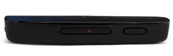 На верхнем торце находятся два (а по сути, три) уже механических элемента. Это ползунок блокировки, а также кнопка-качелька, которая при нажатии на левую сторону активирует функцию, которую выбирает сам пользователь, а также включает запись в режиме радиоприемника и диктофона, а при нажатии на правую сторону устанавливает воспроизведение на паузу и снимает ее, а при длительных нажатиях включает/выключает плеер.