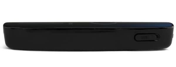 На нижнем торце находится ползунок, при сдвижении которого с правого торца выскакивает «урезанный» штекер USB Type A. Урезанный, так как представляет собой лишь половину от обыкновенного штекера, несущую самые важные его части пазы для соединения с гнездом компьютера. В связи с этой «урезанностью» плеер достаточно свободно держится в USB-гнезде компьютера, но при этом не выпадает и связь с ним не теряется. Надежность закрепления в гнезде, конечно, зависит от конкретной реализации USB-гнезд в системных блоках, ноутбуках и хабах, но в нескольких протестированных плеер уверенно держался как в горизонтальном, так и в вертикальном положениях.