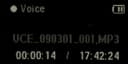 Встроенный микрофон позволяет использовать плеер Samsung U5 как диктофон. Запись ведется напрямую в формат MP3 с битрейтом 128 кбит/с и частотой дискретизации 24 кГц, что довольно скупо, но в простых случаях, когда надо записать, например, диалог в тихом помещении, хватит и этого. В местах записи громких и басовитых звуков начинается дребезжание. Во время записи можно делать паузу. Более никаких возможностей не предусмотрено.