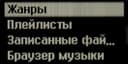 Музыка упорядочивается в библиотеку, но при этом не отменили и возможность перемещаться по папкам. Пункты в библиотеке такие: «Воспроизводится», «Исполнитель», «Альбомы», «Композиции», «Жанры», «Плейлисты», «Записанные файлы», «Браузер музыки». Предпоследний пункт открывает список файлов, записанных с радио и диктофона.